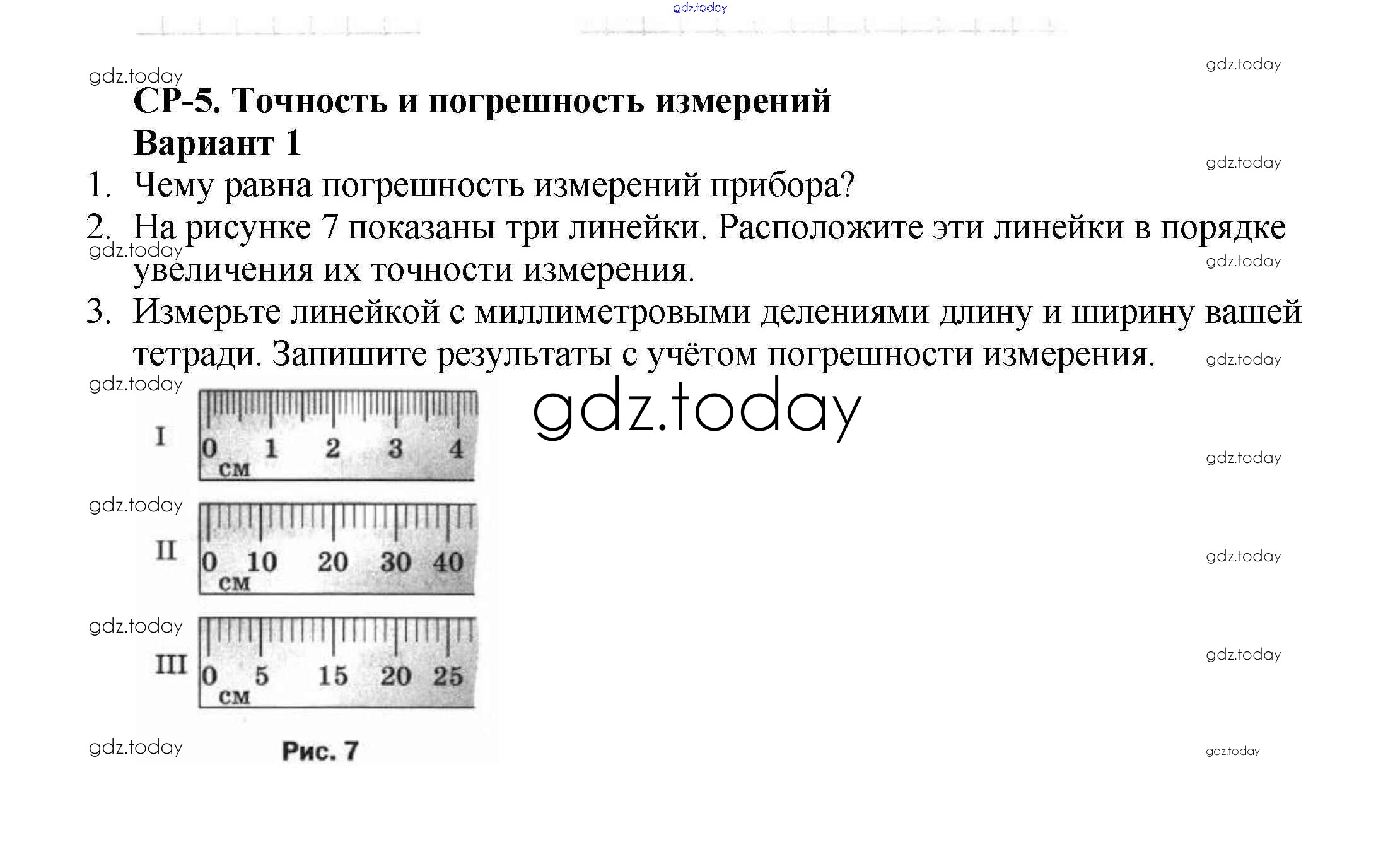 На страницах сайта gdz.today вы найдете учебный и вспомогательный материал, направленный на улучшения знаний школьной программы. ГДЗ - онлайн мир знаний СР-№5. Точность и погрешность измерений Решение к самостоятельным работам Вариант №1 Самостоятельным и контрольным работам по Физике для 7 класса Марон Дрофа Вертикаль 2016