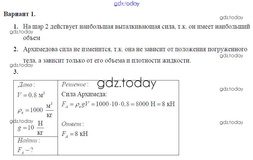 На страницах сайта gdz.today вы найдете учебный и вспомогательный материал, направленный на улучшения знаний школьной программы. ГДЗ - онлайн мир знаний СР-№51. Архимедова сила Решение к самостоятельным работам Вариант №1 Самостоятельным и контрольным работам по Физике для 7 класса Марон Дрофа Вертикаль 2016