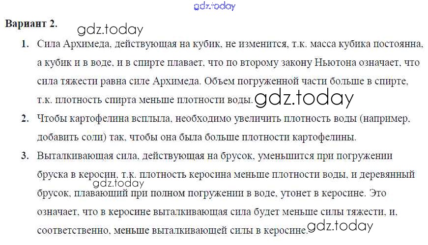 На страницах сайта gdz.today вы найдете учебный и вспомогательный материал, направленный на улучшения знаний школьной программы. ГДЗ - онлайн мир знаний СР-№52. Плавание тел Решение к самостоятельным работам Вариант №2 Самостоятельным и контрольным работам по Физике для 7 класса Марон Дрофа Вертикаль 2016