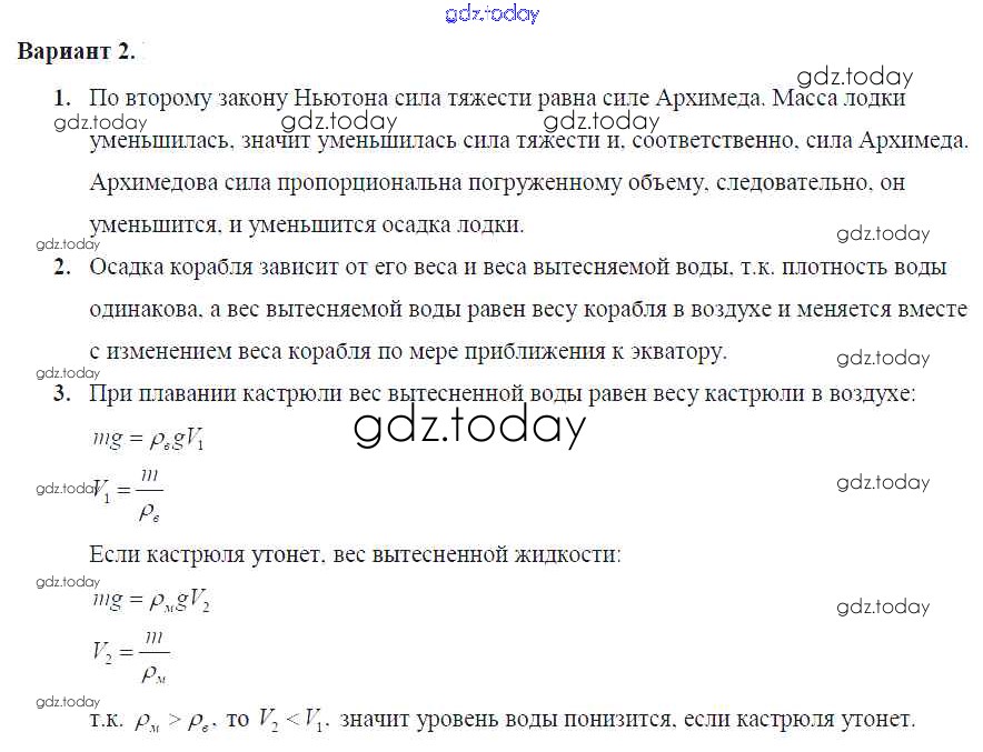 На страницах сайта gdz.today вы найдете учебный и вспомогательный материал, направленный на улучшения знаний школьной программы. ГДЗ - онлайн мир знаний СР-№53. Плавание судов Решение к самостоятельным работам Вариант №2 Самостоятельным и контрольным работам по Физике для 7 класса Марон Дрофа Вертикаль 2016