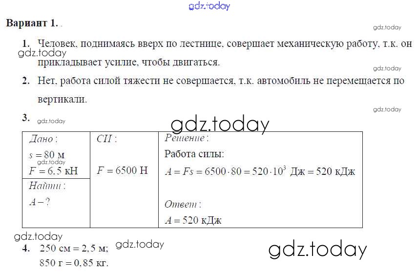 На страницах сайта gdz.today вы найдете учебный и вспомогательный материал, направленный на улучшения знаний школьной программы. ГДЗ - онлайн мир знаний СР-№55. Механическая работа. Единицы работы Решение к самостоятельным работам Вариант №1 Самостоятельным и контрольным работам по Физике для 7 класса Марон Дрофа Вертикаль 2016