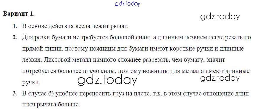 На страницах сайта gdz.today вы найдете учебный и вспомогательный материал, направленный на улучшения знаний школьной программы. ГДЗ - онлайн мир знаний СР-№60. Рычаги в технике, быту и природе Решение к самостоятельным работам Вариант №1 Самостоятельным и контрольным работам по Физике для 7 класса Марон Дрофа Вертикаль 2016