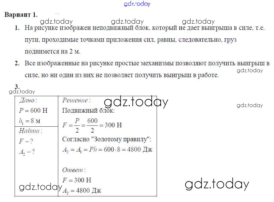 На страницах сайта gdz.today вы найдете учебный и вспомогательный материал, направленный на улучшения знаний школьной программы. ГДЗ - онлайн мир знаний СР-№62. Равенство работ при использовании простых механизмов Решение к самостоятельным работам Вариант №1 Самостоятельным и контрольным работам по Физике для 7 класса Марон Дрофа Вертикаль 2016