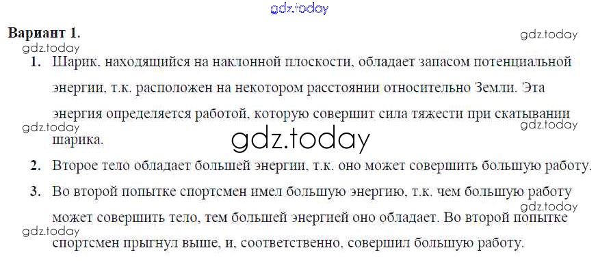 На страницах сайта gdz.today вы найдете учебный и вспомогательный материал, направленный на улучшения знаний школьной программы. ГДЗ - онлайн мир знаний СР-№66. Энергия Решение к самостоятельным работам Вариант №1 Самостоятельным и контрольным работам по Физике для 7 класса Марон Дрофа Вертикаль 2016