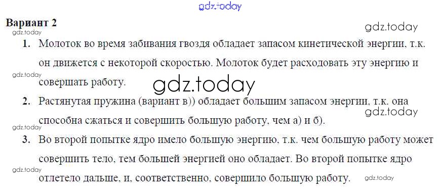 На страницах сайта gdz.today вы найдете учебный и вспомогательный материал, направленный на улучшения знаний школьной программы. ГДЗ - онлайн мир знаний СР-№66. Энергия Решение к самостоятельным работам Вариант №2 Самостоятельным и контрольным работам по Физике для 7 класса Марон Дрофа Вертикаль 2016