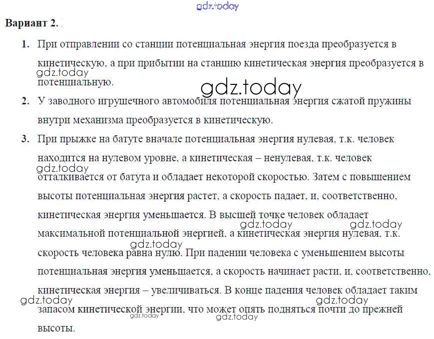 На страницах сайта gdz.today вы найдете учебный и вспомогательный материал, направленный на улучшения знаний школьной программы. ГДЗ - онлайн мир знаний СР-№68. Превращение одного вида механической энергии в другой Решение к самостоятельным работам Вариант №2 Самостоятельным и контрольным работам по Физике для 7 класса Марон Дрофа Вертикаль 2016