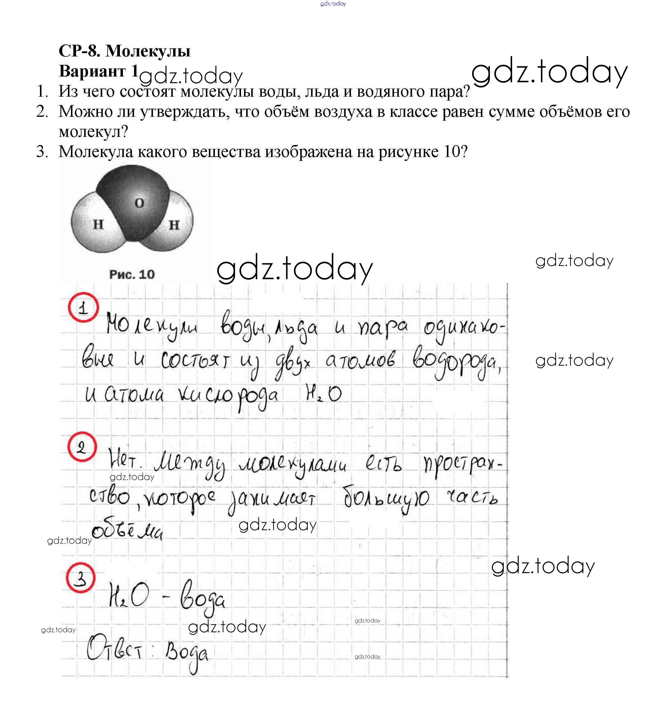 На страницах сайта gdz.today вы найдете учебный и вспомогательный материал, направленный на улучшения знаний школьной программы. ГДЗ - онлайн мир знаний СР-№8. Молекулы Решение к самостоятельным работам Вариант №1 Самостоятельным и контрольным работам по Физике для 7 класса Марон Дрофа Вертикаль 2016