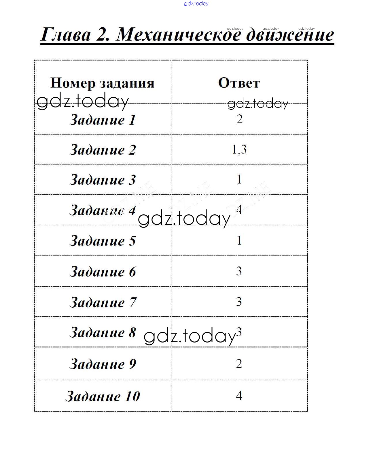 На страницах сайта gdz.today вы найдете учебный и вспомогательный материал, направленный на улучшения знаний школьной программы. ГДЗ - онлайн мир знаний Часть 1 Решение к главе 2 Механическое движение Тестам по Физике для 7 класса Чеботарева Экзамен УМК 2017
