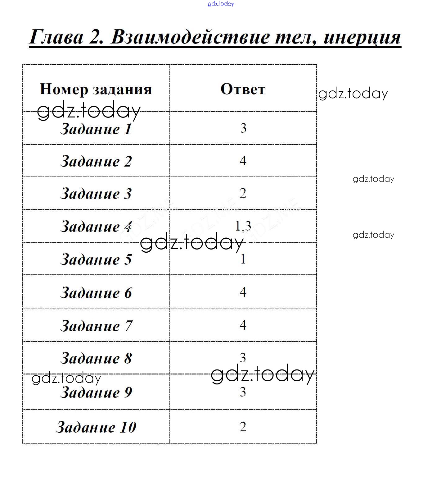 На страницах сайта gdz.today вы найдете учебный и вспомогательный материал, направленный на улучшения знаний школьной программы. ГДЗ - онлайн мир знаний Часть 1 Решение к главе 2 Взаимодействие тел, инерция Тестам по Физике для 7 класса Чеботарева Экзамен УМК 2017