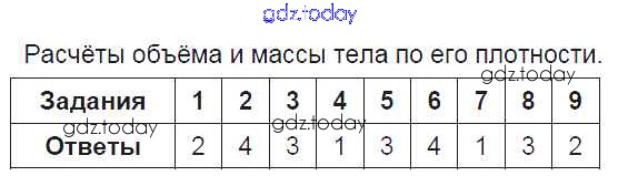 На страницах сайта gdz.today вы найдете учебный и вспомогательный материал, направленный на улучшения знаний школьной программы. ГДЗ - онлайн мир знаний Часть 1 Решение к главе 2 Расчёты объёма и массы тела по его плотности Тестам по Физике для 7 класса Чеботарева Экзамен УМК 2017