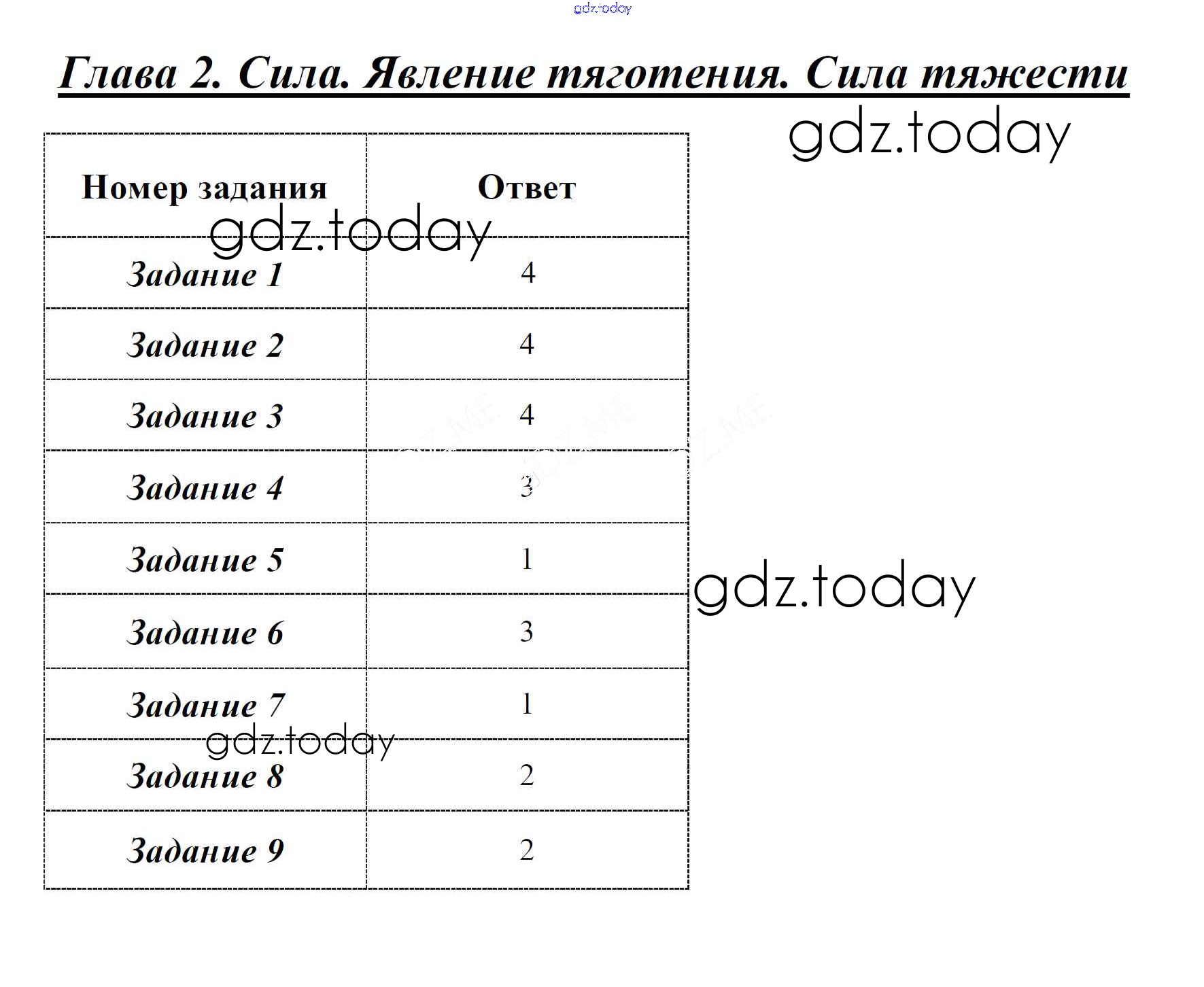 На страницах сайта gdz.today вы найдете учебный и вспомогательный материал, направленный на улучшения знаний школьной программы. ГДЗ - онлайн мир знаний Часть 2 Решение к главе 2 Сила. Явление тяготения. Сила тяжести Тестам по Физике для 7 класса Чеботарева Экзамен УМК 2017