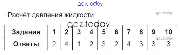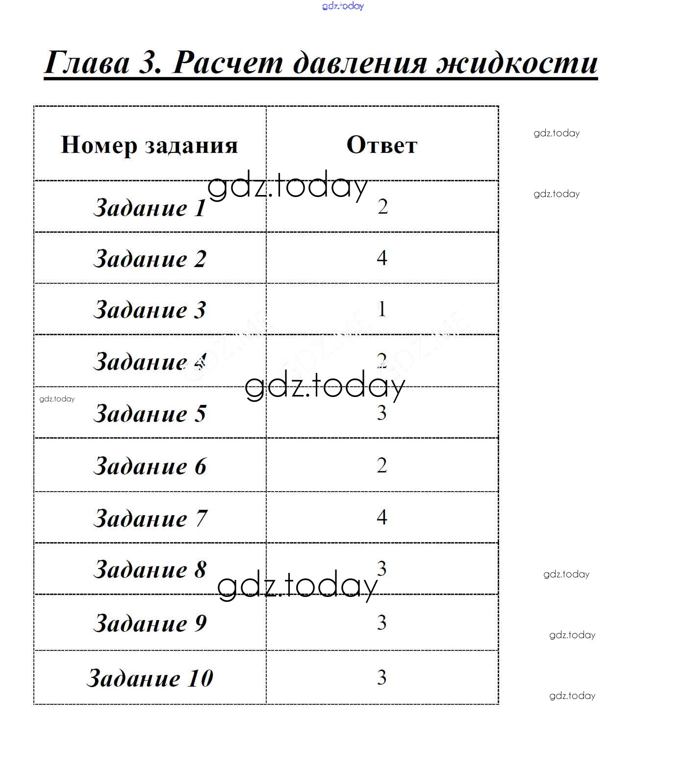 На страницах сайта gdz.today вы найдете учебный и вспомогательный материал, направленный на улучшения знаний школьной программы. ГДЗ - онлайн мир знаний Часть 1 Решение к главе 3 Расчет давления жидкости Тестам по Физике для 7 класса Чеботарева Экзамен УМК 2017