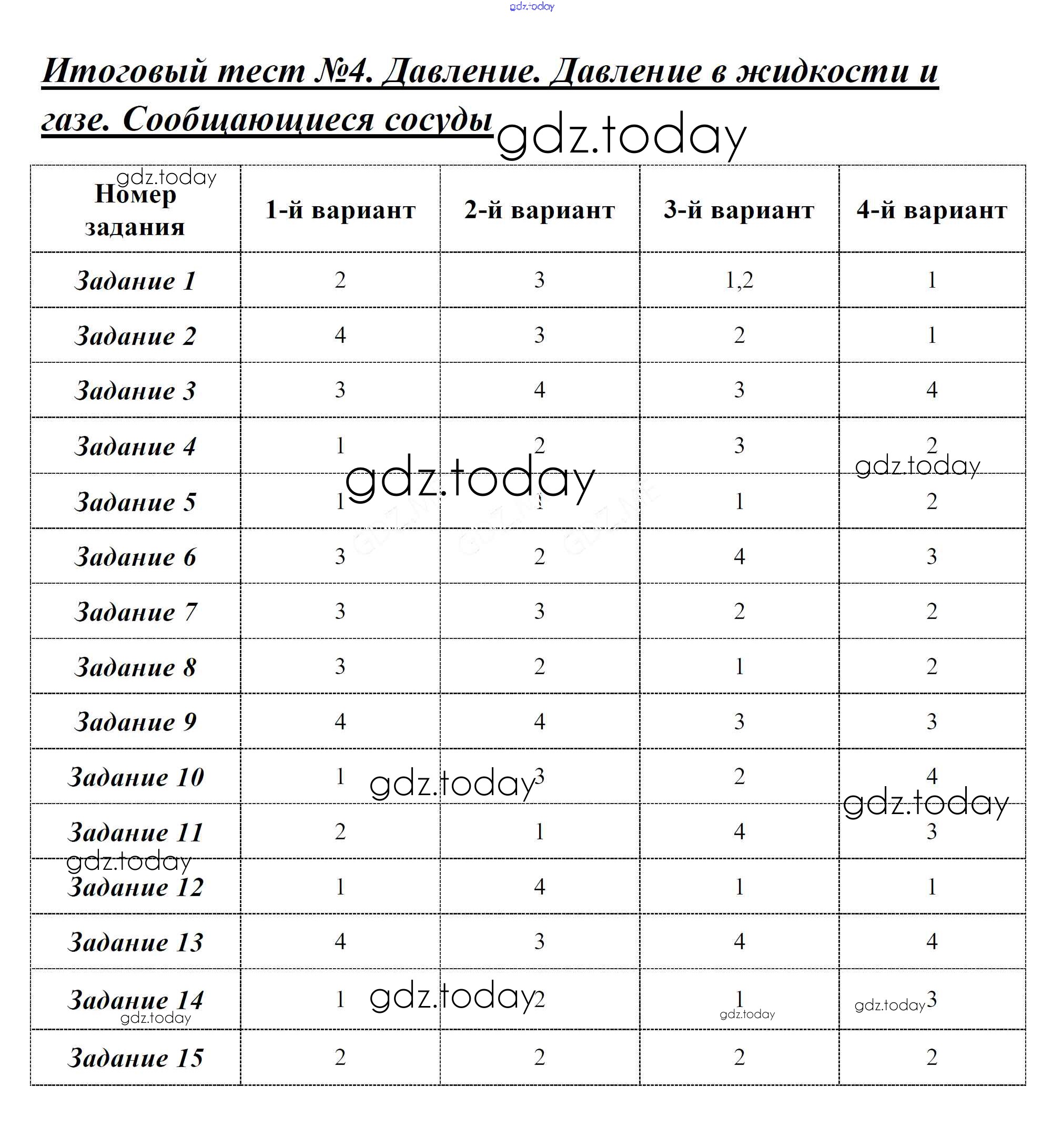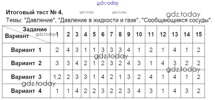 На страницах сайта gdz.today вы найдете учебный и вспомогательный материал, направленный на улучшения знаний школьной программы. ГДЗ - онлайн мир знаний Часть 1 Решение к главе 3 Итоговый тест №4 Тестам по Физике для 7 класса Чеботарева Экзамен УМК 2017