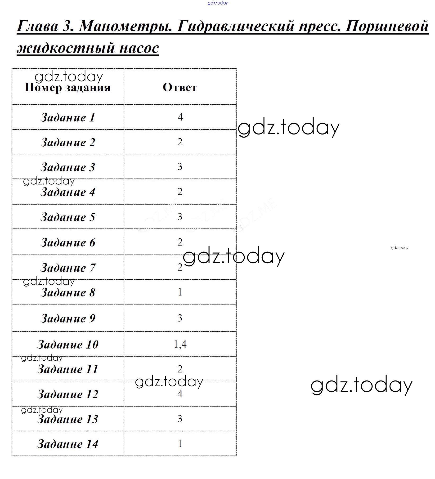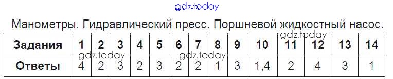На страницах сайта gdz.today вы найдете учебный и вспомогательный материал, направленный на улучшения знаний школьной программы. ГДЗ - онлайн мир знаний Часть 2 Решение к главе 3 Манометры. Гидравлический пресс. Поршневой жидкостный насос Тестам по Физике для 7 класса Чеботарева Экзамен УМК 2017