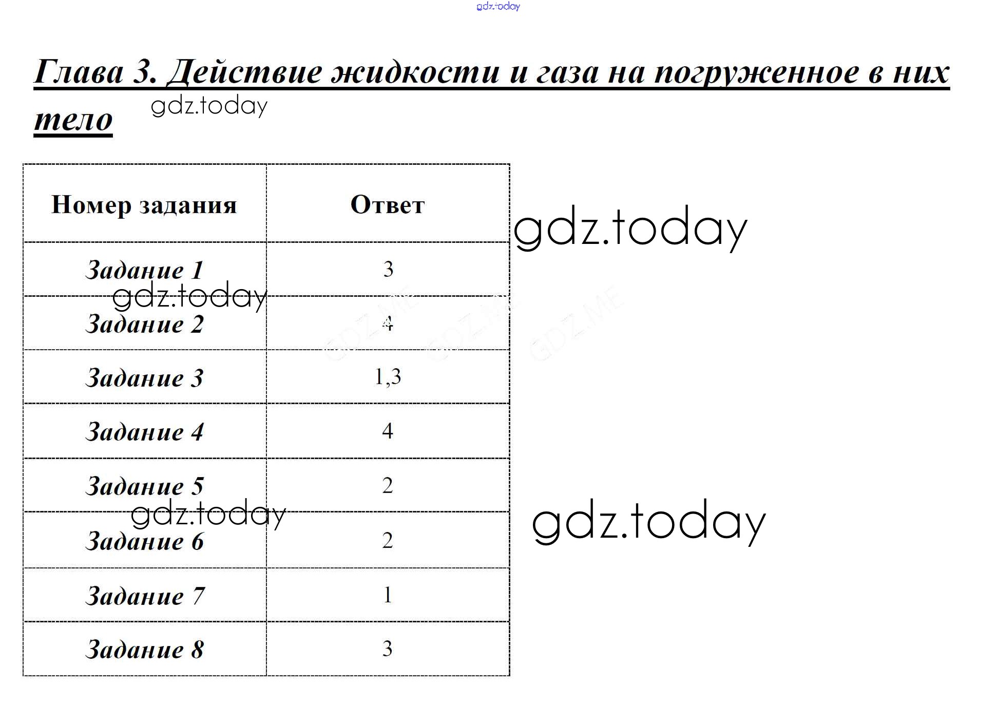 На страницах сайта gdz.today вы найдете учебный и вспомогательный материал, направленный на улучшения знаний школьной программы. ГДЗ - онлайн мир знаний Часть 2 Решение к главе 3 Действие жидкости и газа на погруженное в них тело Тестам по Физике для 7 класса Чеботарева Экзамен УМК 2017