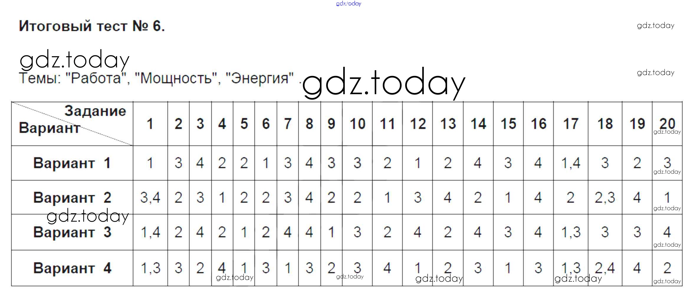 На страницах сайта gdz.today вы найдете учебный и вспомогательный материал, направленный на улучшения знаний школьной программы. ГДЗ - онлайн мир знаний Решение к главе 4 Итоговый тест №6 Тестам по Физике для 7 класса Чеботарева Экзамен УМК 2017
