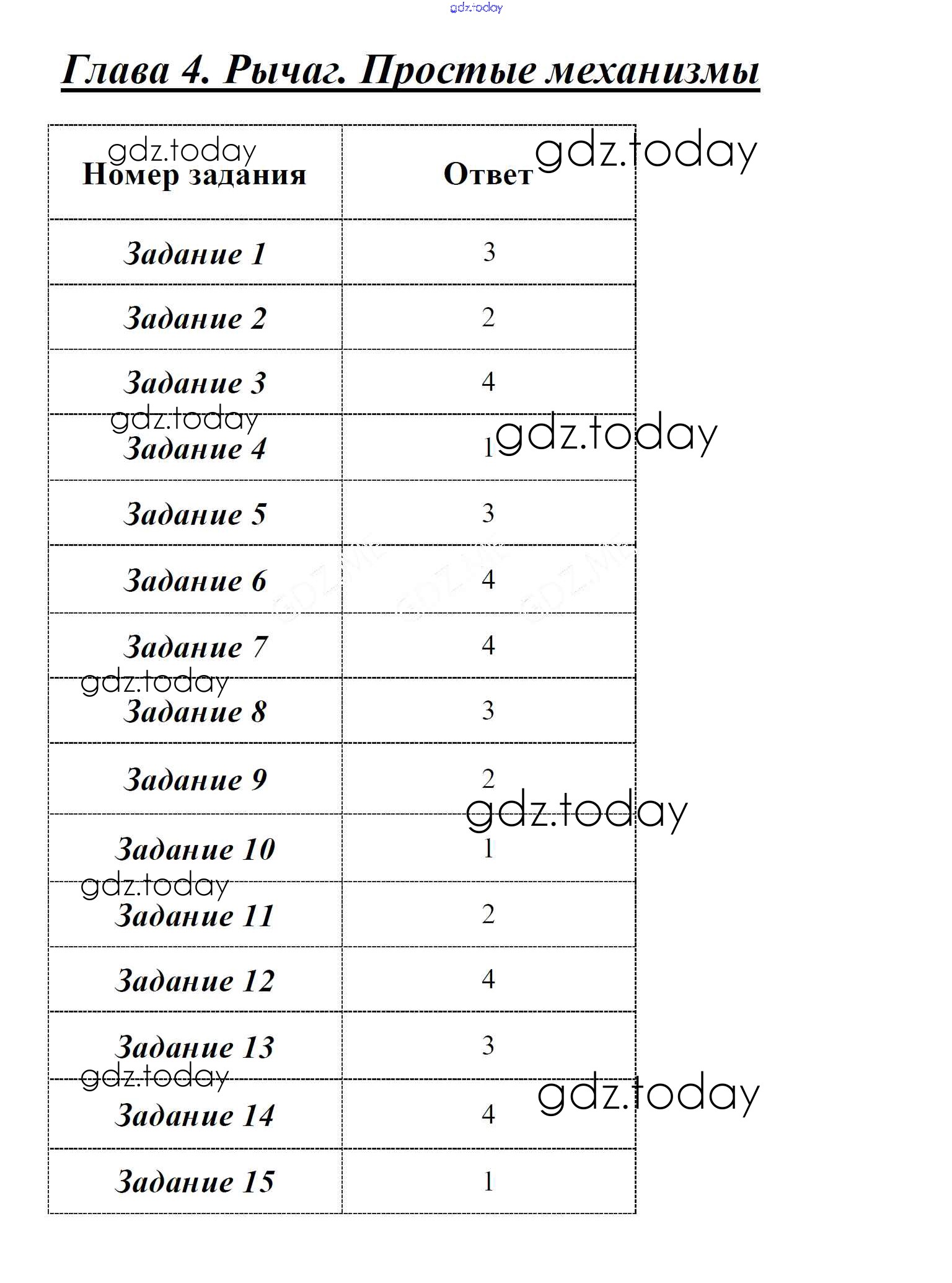 На страницах сайта gdz.today вы найдете учебный и вспомогательный материал, направленный на улучшения знаний школьной программы. ГДЗ - онлайн мир знаний Решение к главе 4 Простые механизмы. Рычаг Тестам по Физике для 7 класса Чеботарева Экзамен УМК 2017