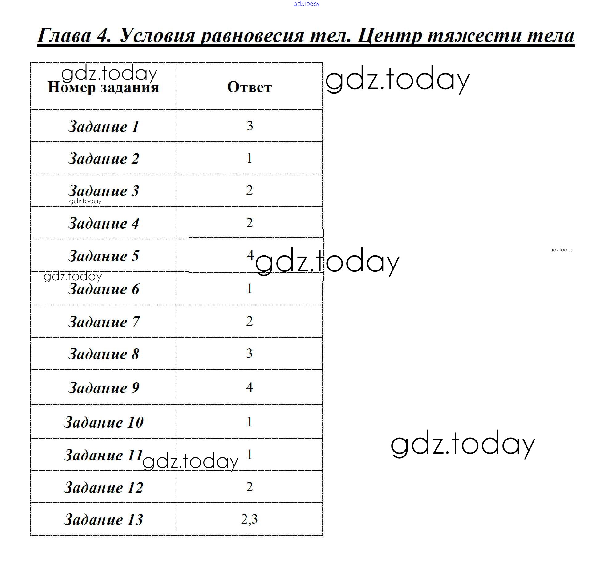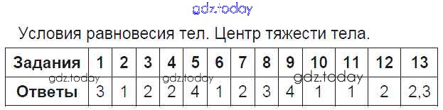На страницах сайта gdz.today вы найдете учебный и вспомогательный материал, направленный на улучшения знаний школьной программы. ГДЗ - онлайн мир знаний Решение к главе 4 Центр тяжести тела. Условия равновесия тел Тестам по Физике для 7 класса Чеботарева Экзамен УМК 2017
