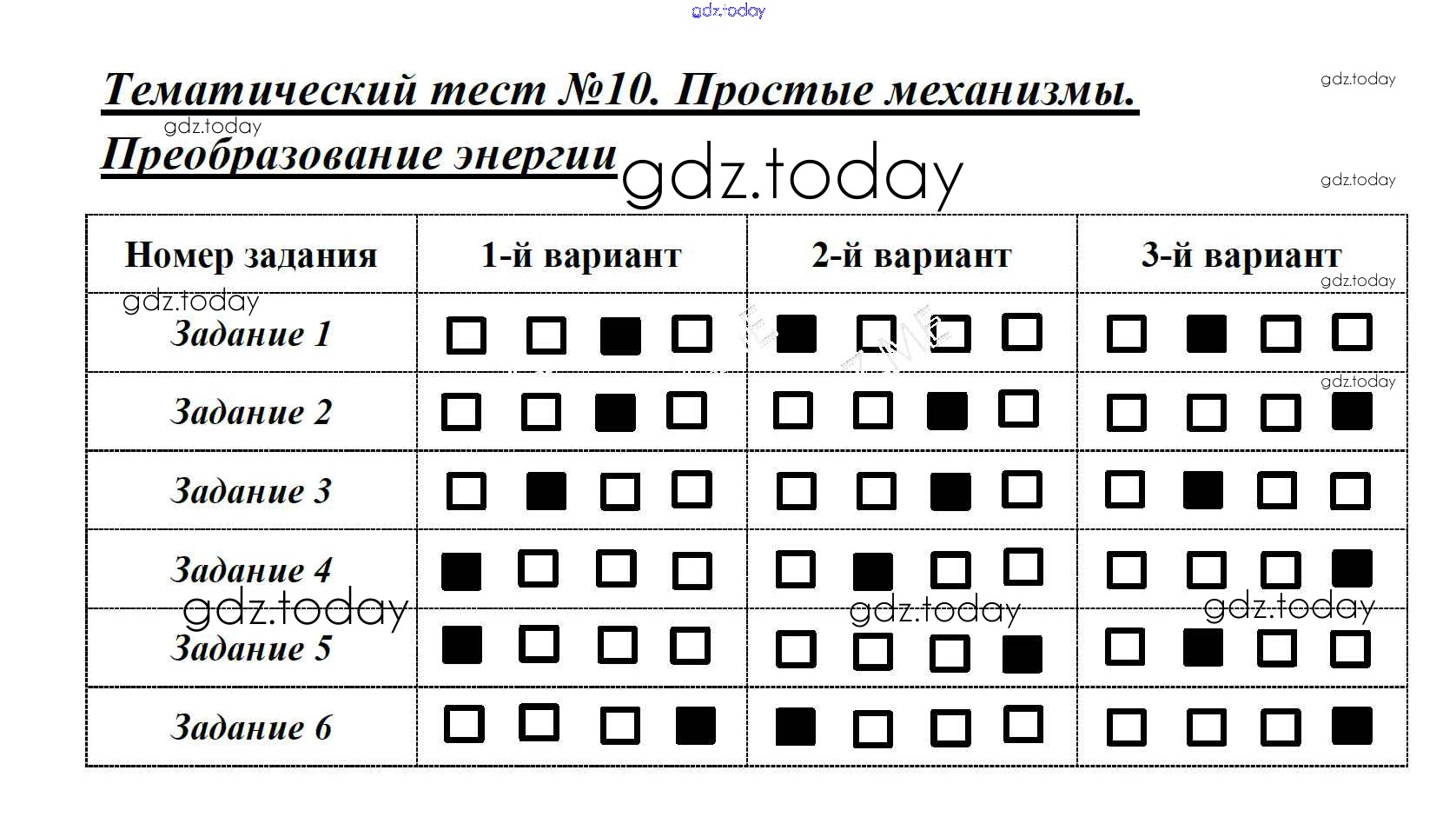 На страницах сайта gdz.today вы найдете учебный и вспомогательный материал, направленный на улучшения знаний школьной программы. ГДЗ - онлайн мир знаний Решение к тестам Тест 10. Простые механизмы. Преобразование энергии Тестам по Физике для 7 класса Ханнанов, Ханнанова Дрофа Вертикаль 2017