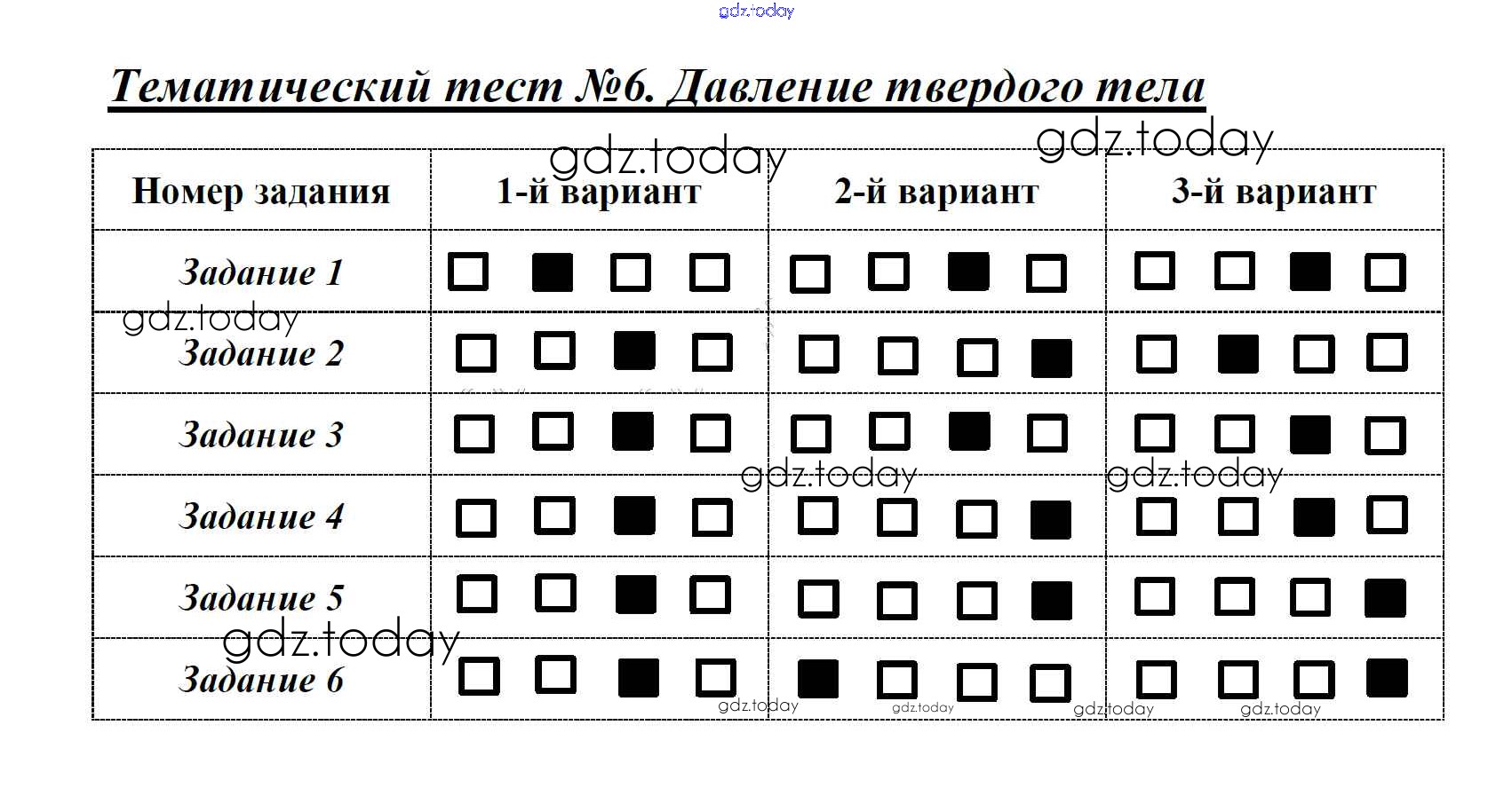 На страницах сайта gdz.today вы найдете учебный и вспомогательный материал, направленный на улучшения знаний школьной программы. ГДЗ - онлайн мир знаний Решение к тестам Тест 6. Давление твердого тела Тестам по Физике для 7 класса Ханнанов, Ханнанова Дрофа Вертикаль 2017