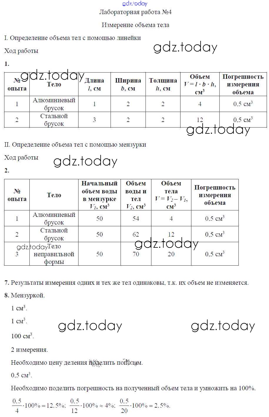 На страницах сайта gdz.today вы найдете учебный и вспомогательный материал, направленный на улучшения знаний школьной программы. ГДЗ - онлайн мир знаний Решение. Лабораторные работы ЛР №4. Измерение объема тела Тетради для лабораторных работ по Физике для 7 класса Минькова, Иванова Экзамен УМК 2017