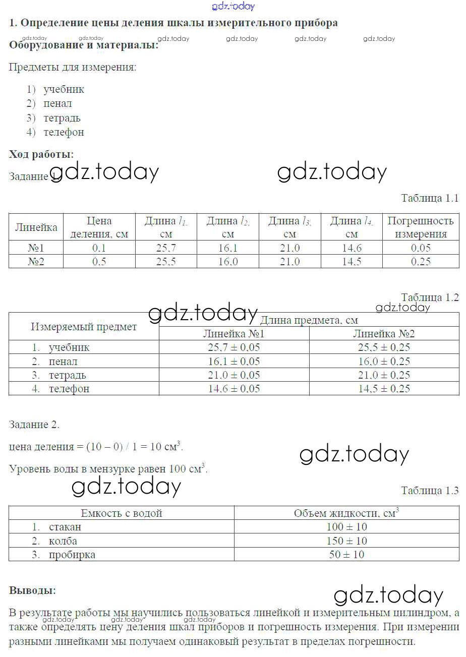 На страницах сайта gdz.today вы найдете учебный и вспомогательный материал, направленный на улучшения знаний школьной программы. ГДЗ - онлайн мир знаний Решение к лабораторным работам №1. Определение цены деления шкалы измерительного прибор Тетради-практикуму по Физике для 7 класса Белага, Воронцова Просвещение Сферы 2012