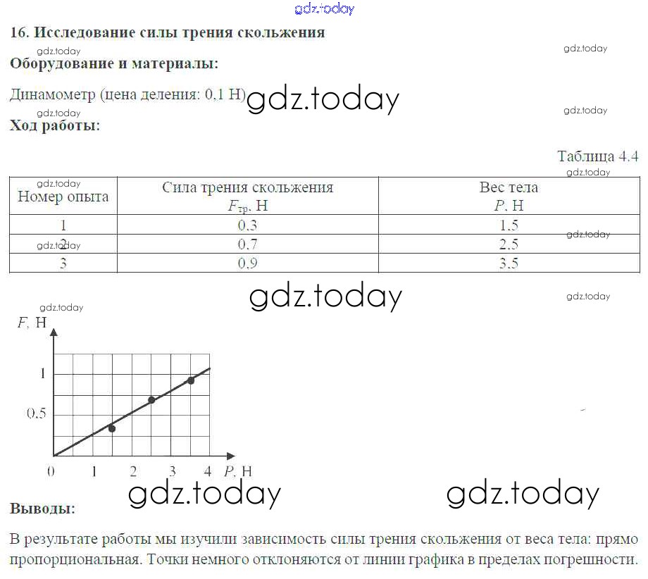 На страницах сайта gdz.today вы найдете учебный и вспомогательный материал, направленный на улучшения знаний школьной программы. ГДЗ - онлайн мир знаний Решение к лабораторным работам №16. Исследование силы трения скольжения Тетради-практикуму по Физике для 7 класса Белага, Воронцова Просвещение Сферы 2012
