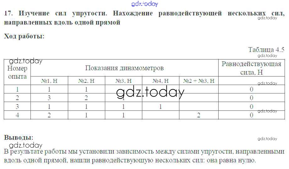 На страницах сайта gdz.today вы найдете учебный и вспомогательный материал, направленный на улучшения знаний школьной программы. ГДЗ - онлайн мир знаний Решение к лабораторным работам №17. Изучение сил упругости Тетради-практикуму по Физике для 7 класса Белага, Воронцова Просвещение Сферы 2012