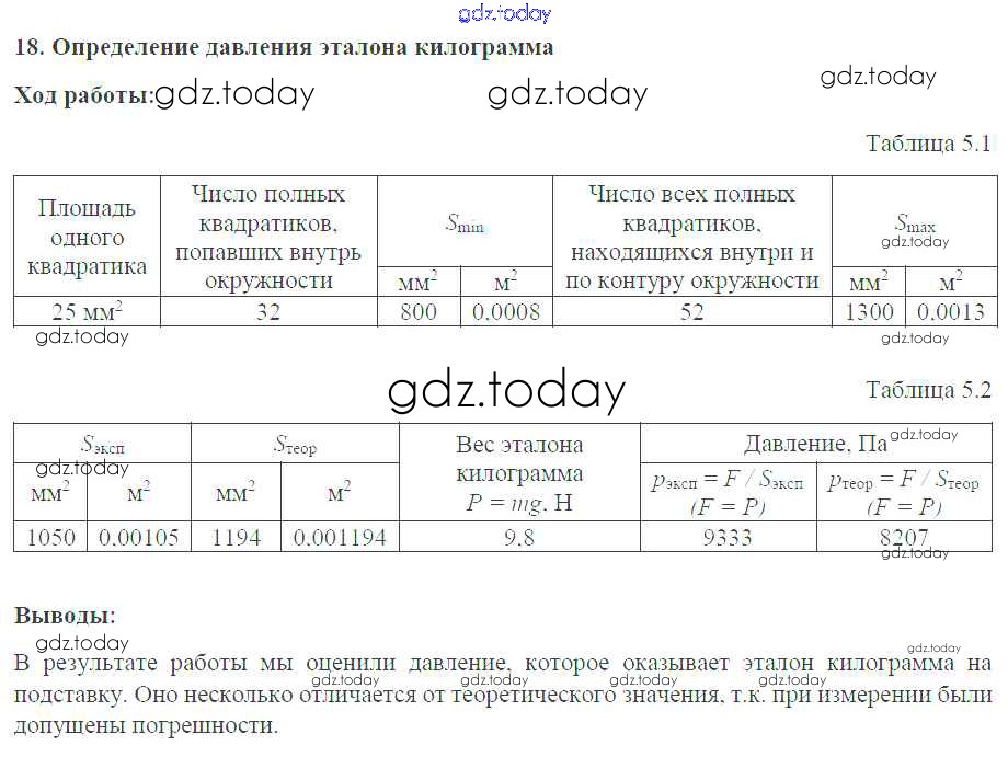 На страницах сайта gdz.today вы найдете учебный и вспомогательный материал, направленный на улучшения знаний школьной программы. ГДЗ - онлайн мир знаний Решение к лабораторным работам №18. Определение давления эталона килограмма Тетради-практикуму по Физике для 7 класса Белага, Воронцова Просвещение Сферы 2012