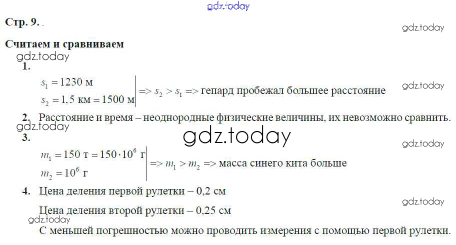 Ответы к Решение к главе 1. Физика и мир, в котором мы живем стр.9 Тетради-тренажеру по Физике для 7 класса Артеменков, Белага Просвещение Сферы 2016