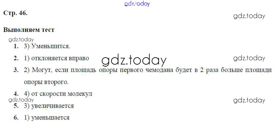 На страницах сайта gdz.today вы найдете учебный и вспомогательный материал, направленный на улучшения знаний школьной программы. ГДЗ - онлайн мир знаний Решение к главе 5. Давление твёрдых тел, жидкостей и газов стр.46 Тетради-тренажеру по Физике для 7 класса Артеменков, Белага Просвещение Сферы 2016