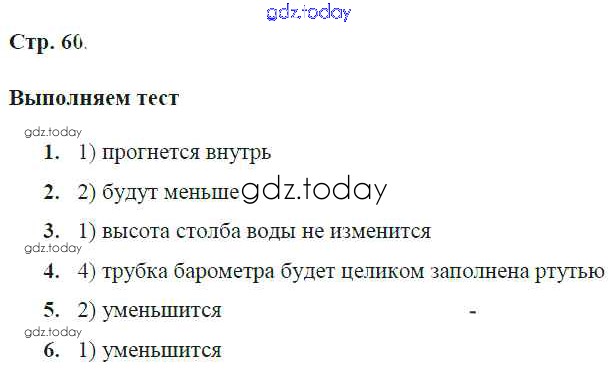 На страницах сайта gdz.today вы найдете учебный и вспомогательный материал, направленный на улучшения знаний школьной программы. ГДЗ - онлайн мир знаний Решение к главе 6. Атмосфера и атмосферное давление стр.60 Тетради-тренажеру по Физике для 7 класса Артеменков, Белага Просвещение Сферы 2016