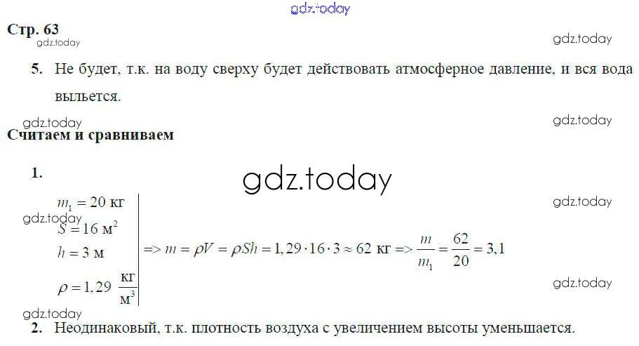 На страницах сайта gdz.today вы найдете учебный и вспомогательный материал, направленный на улучшения знаний школьной программы. ГДЗ - онлайн мир знаний Решение к главе 6. Атмосфера и атмосферное давление стр.63 Тетради-тренажеру по Физике для 7 класса Артеменков, Белага Просвещение Сферы 2016