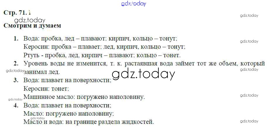 На страницах сайта gdz.today вы найдете учебный и вспомогательный материал, направленный на улучшения знаний школьной программы. ГДЗ - онлайн мир знаний Решение к главе 7. Закон Архимеда. Плавание тел стр.71 Тетради-тренажеру по Физике для 7 класса Артеменков, Белага Просвещение Сферы 2016