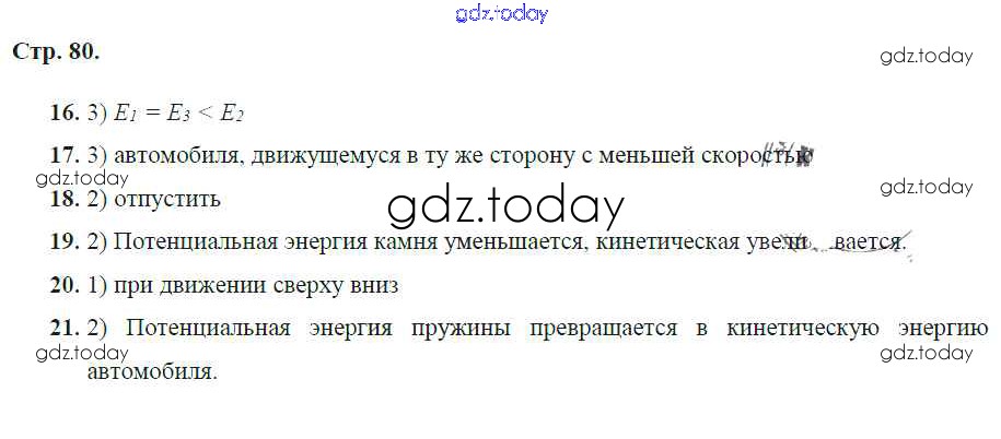 На страницах сайта gdz.today вы найдете учебный и вспомогательный материал, направленный на улучшения знаний школьной программы. ГДЗ - онлайн мир знаний Решение к главе 8. Работа, мощность, энергия стр.80 Тетради-тренажеру по Физике для 7 класса Артеменков, Белага Просвещение Сферы 2016