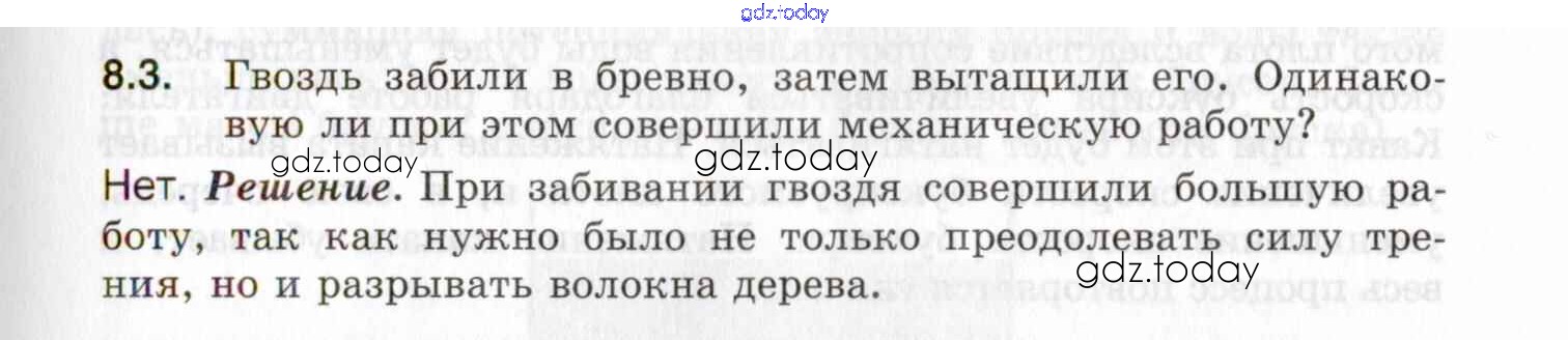 На страницах сайта gdz.today вы найдете учебный и вспомогательный материал, направленный на улучшения знаний школьной программы. ГДЗ - онлайн мир знаний Решение к теме 8. Механическая работа. Мощность. Энергия 8.3 Задачнику по Физике для 7-9 класса Генденштейн, Кирик Илекса 2020