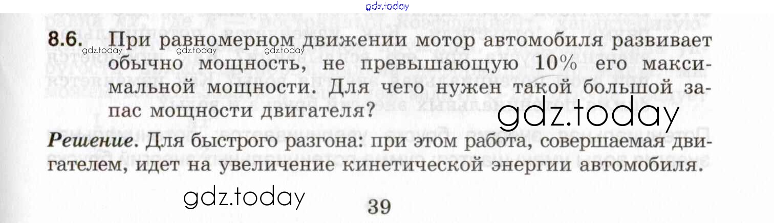 На страницах сайта gdz.today вы найдете учебный и вспомогательный материал, направленный на улучшения знаний школьной программы. ГДЗ - онлайн мир знаний Решение к теме 8. Механическая работа. Мощность. Энергия 8.6 Задачнику по Физике для 7-9 класса Генденштейн, Кирик Илекса 2020