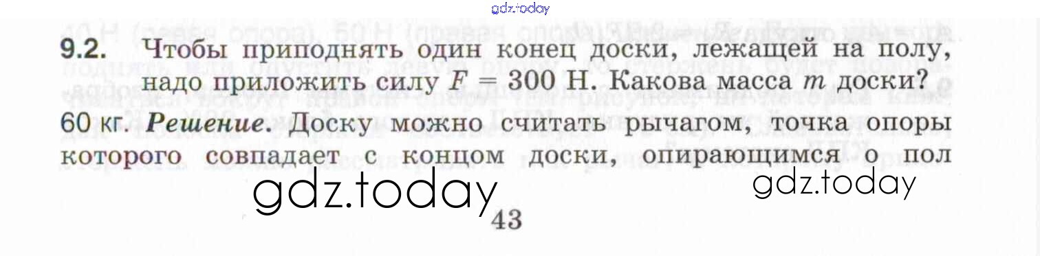 На страницах сайта gdz.today вы найдете учебный и вспомогательный материал, направленный на улучшения знаний школьной программы. ГДЗ - онлайн мир знаний Решение к теме 9. Рычаги. Блоки. «Золотое правило» механики. Коэффициент полезного действия механизмов 9.2 Задачнику по Физике для 7-9 класса Генденштейн, Кирик Илекса 2020
