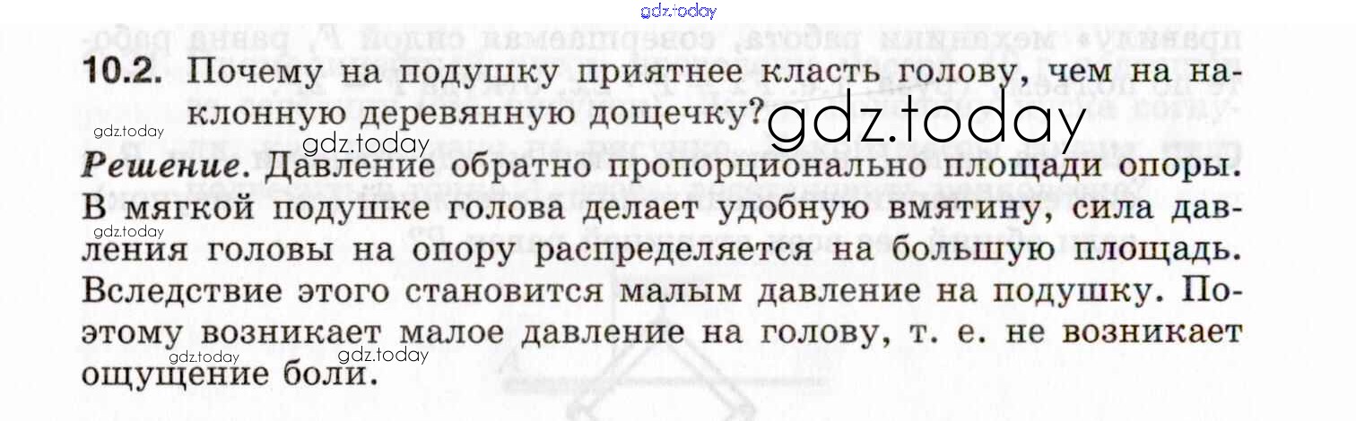 На страницах сайта gdz.today вы найдете учебный и вспомогательный материал, направленный на улучшения знаний школьной программы. ГДЗ - онлайн мир знаний Решение к теме 10. Давление твердых тел 10.2 Задачнику по Физике для 7-9 класса Генденштейн, Кирик Илекса 2020