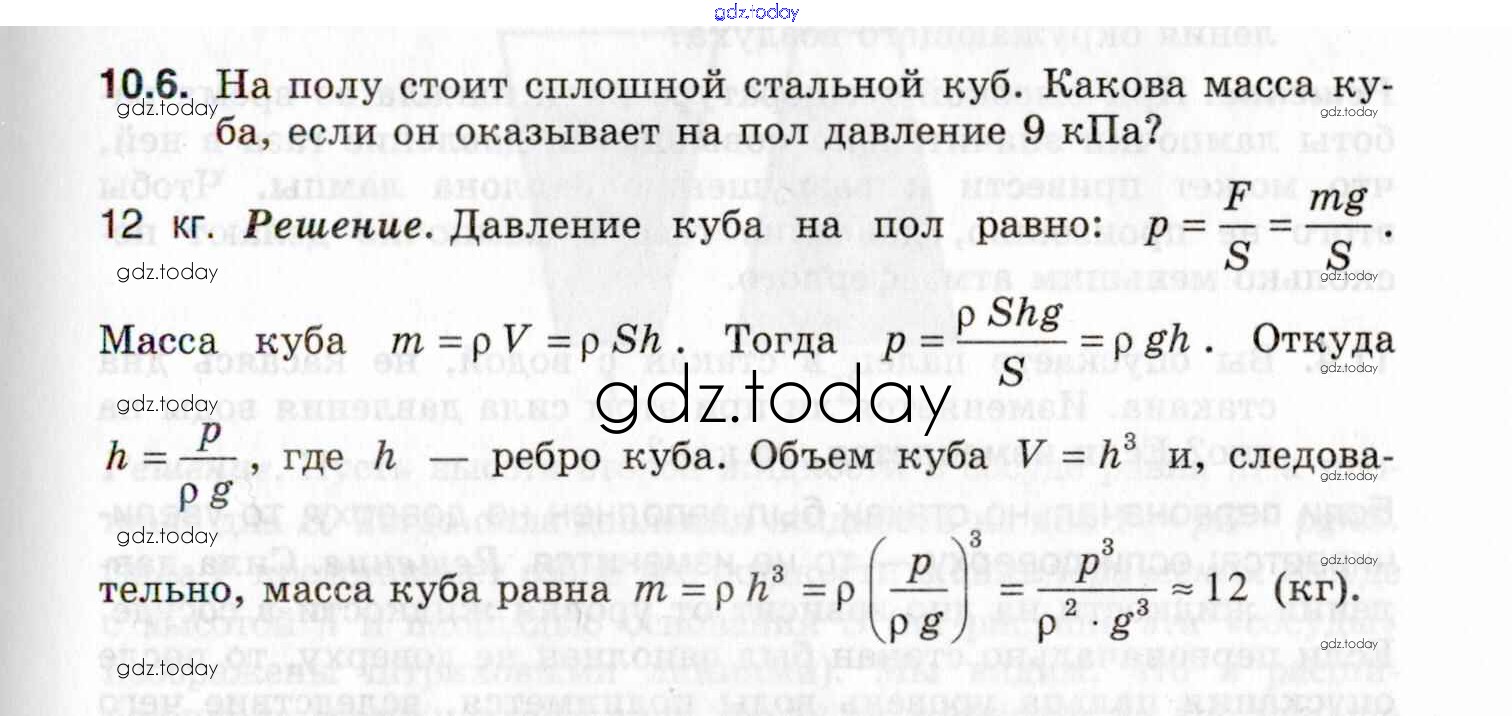 На страницах сайта gdz.today вы найдете учебный и вспомогательный материал, направленный на улучшения знаний школьной программы. ГДЗ - онлайн мир знаний Решение к теме 10. Давление твердых тел 10.6 Задачнику по Физике для 7-9 класса Генденштейн, Кирик Илекса 2020