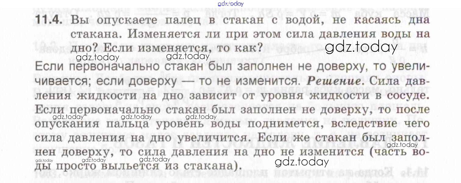На страницах сайта gdz.today вы найдете учебный и вспомогательный материал, направленный на улучшения знаний школьной программы. ГДЗ - онлайн мир знаний Решение к теме 11. Давление жидкостей и газов 11.4 Задачнику по Физике для 7-9 класса Генденштейн, Кирик Илекса 2020
