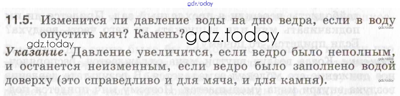 На страницах сайта gdz.today вы найдете учебный и вспомогательный материал, направленный на улучшения знаний школьной программы. ГДЗ - онлайн мир знаний Решение к теме 11. Давление жидкостей и газов 11.5 Задачнику по Физике для 7-9 класса Генденштейн, Кирик Илекса 2020