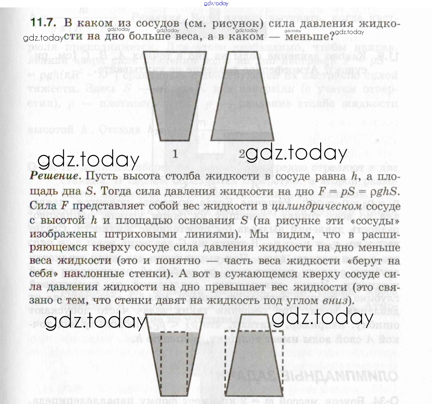 На страницах сайта gdz.today вы найдете учебный и вспомогательный материал, направленный на улучшения знаний школьной программы. ГДЗ - онлайн мир знаний Решение к теме 11. Давление жидкостей и газов 11.7 Задачнику по Физике для 7-9 класса Генденштейн, Кирик Илекса 2020