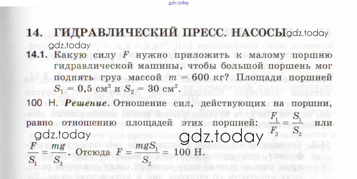 На страницах сайта gdz.today вы найдете учебный и вспомогательный материал, направленный на улучшения знаний школьной программы. ГДЗ - онлайн мир знаний Решение к теме 14. Гидравлический пресс. Насосы 14.1 Задачнику по Физике для 7-9 класса Генденштейн, Кирик Илекса 2020