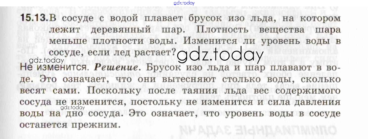 На страницах сайта gdz.today вы найдете учебный и вспомогательный материал, направленный на улучшения знаний школьной программы. ГДЗ - онлайн мир знаний Решение к теме 15. Архимедова сила. Плавание тел 15.13 Задачнику по Физике для 7-9 класса Генденштейн, Кирик Илекса 2020