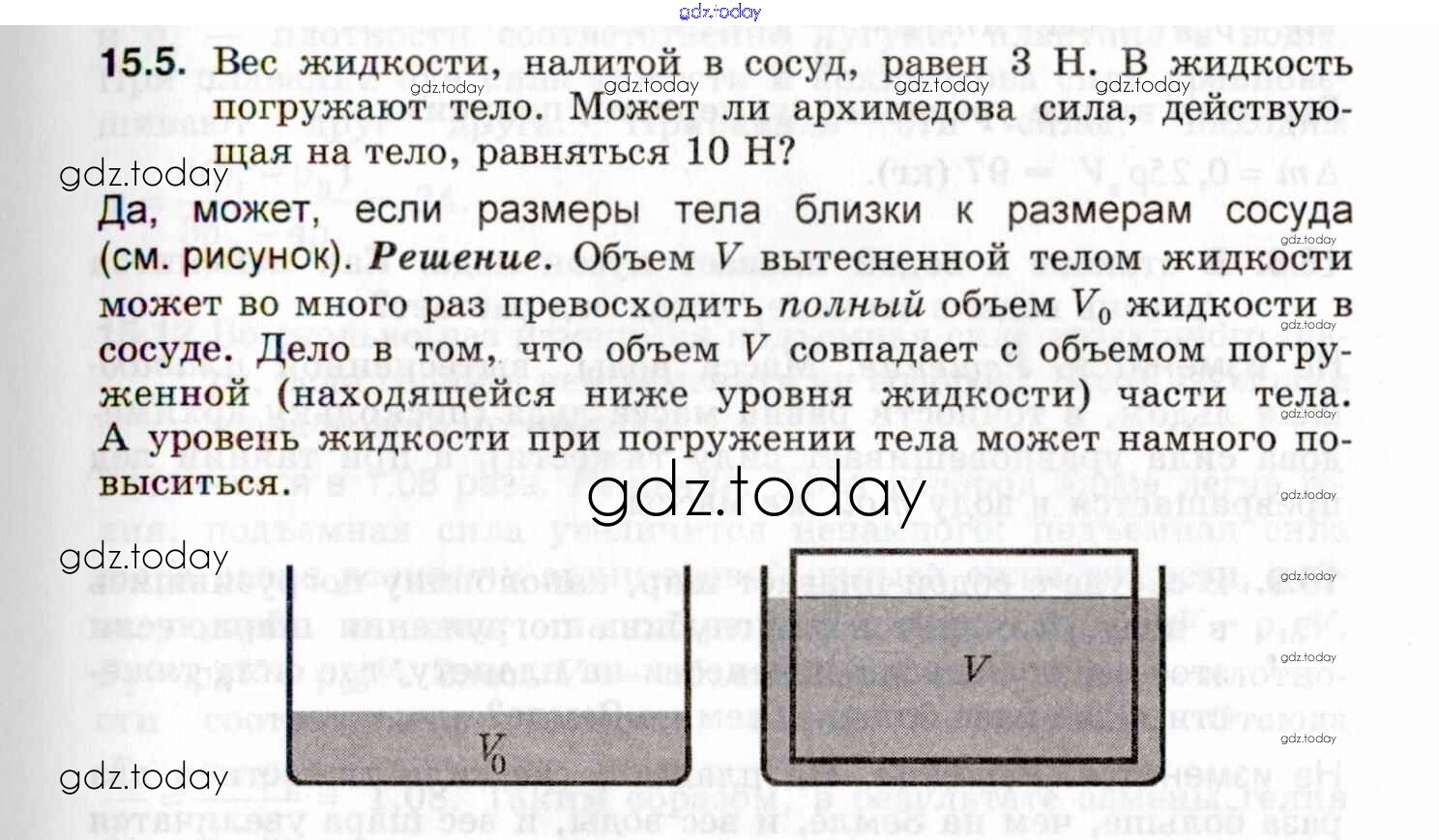 На страницах сайта gdz.today вы найдете учебный и вспомогательный материал, направленный на улучшения знаний школьной программы. ГДЗ - онлайн мир знаний Решение к теме 15. Архимедова сила. Плавание тел 15.5 Задачнику по Физике для 7-9 класса Генденштейн, Кирик Илекса 2020