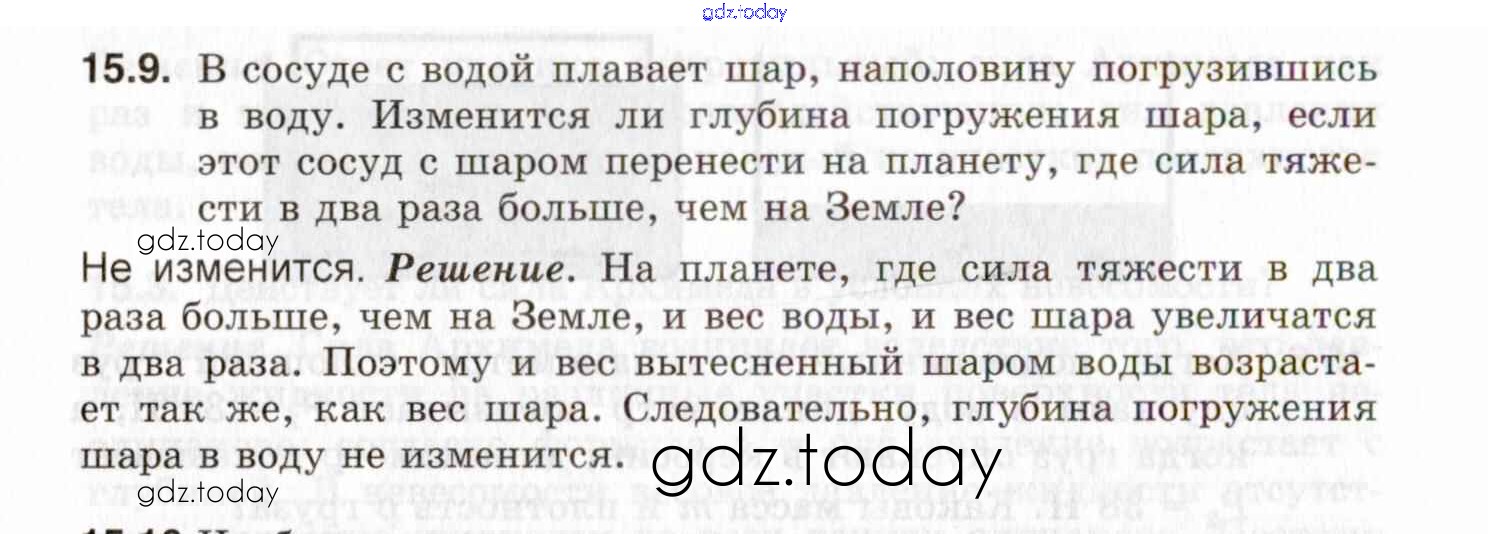 На страницах сайта gdz.today вы найдете учебный и вспомогательный материал, направленный на улучшения знаний школьной программы. ГДЗ - онлайн мир знаний Решение к теме 15. Архимедова сила. Плавание тел 15.9 Задачнику по Физике для 7-9 класса Генденштейн, Кирик Илекса 2020