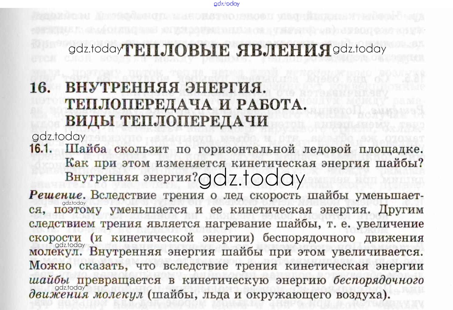 На страницах сайта gdz.today вы найдете учебный и вспомогательный материал, направленный на улучшения знаний школьной программы. ГДЗ - онлайн мир знаний Решение к теме 16. Внутренняя энергия. Теплопередача и работа. Виды теплопередачи 16.1 Задачнику по Физике для 7-9 класса Генденштейн, Кирик Илекса 2020