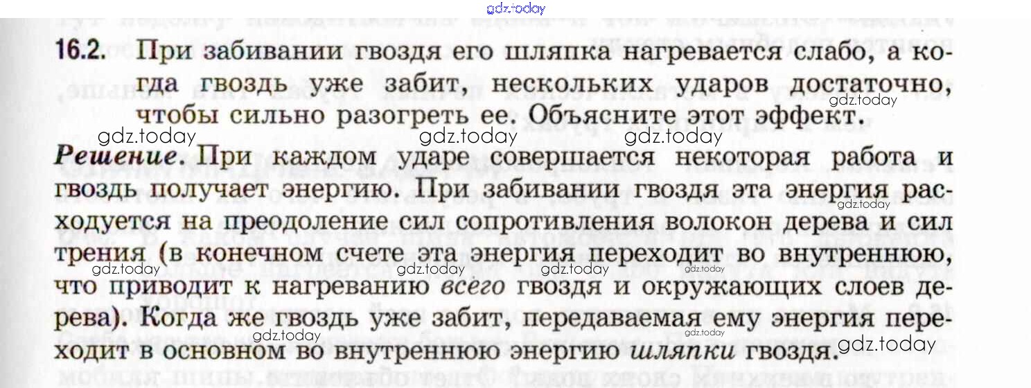 На страницах сайта gdz.today вы найдете учебный и вспомогательный материал, направленный на улучшения знаний школьной программы. ГДЗ - онлайн мир знаний Решение к теме 16. Внутренняя энергия. Теплопередача и работа. Виды теплопередачи 16.2 Задачнику по Физике для 7-9 класса Генденштейн, Кирик Илекса 2020