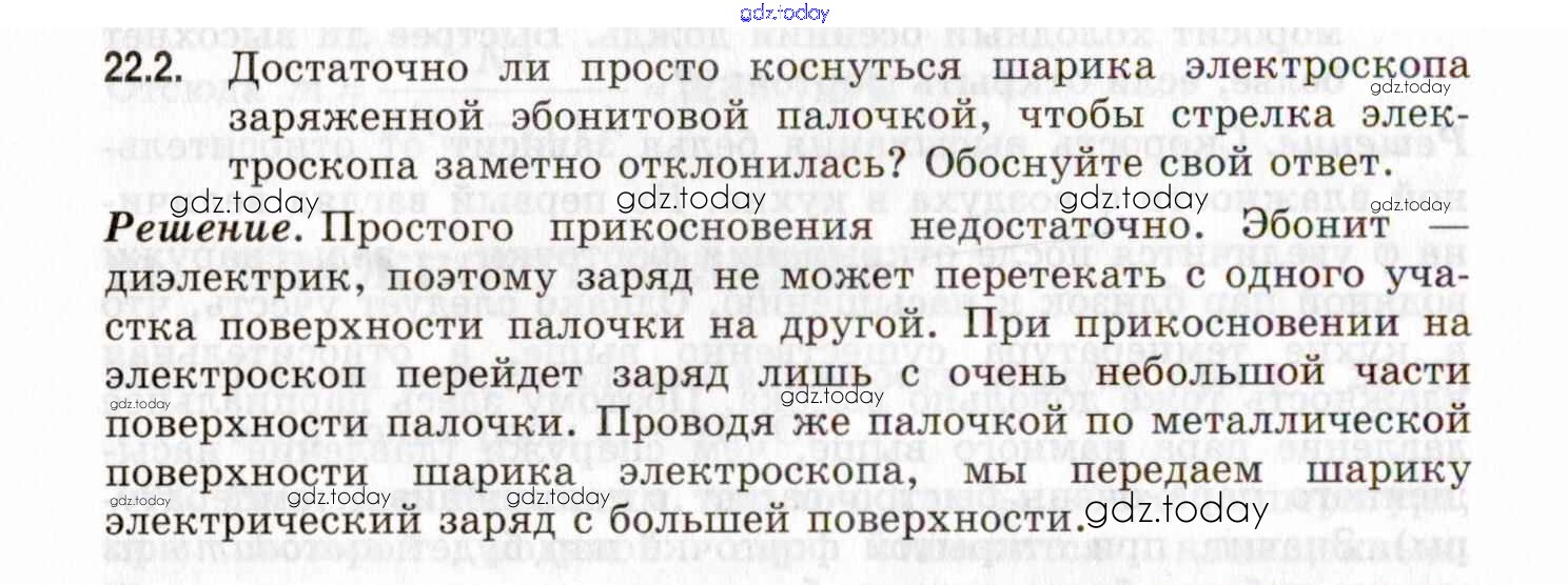 На страницах сайта gdz.today вы найдете учебный и вспомогательный материал, направленный на улучшения знаний школьной программы. ГДЗ - онлайн мир знаний Решение к теме 22. Электризация тел. Строение атома. Электрическое поле 22.2 Задачнику по Физике для 7-9 класса Генденштейн, Кирик Илекса 2020